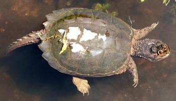 Chelydridae Chelydrids are large freshwater turtles with massive heads. Their head is indeed so big that it cannot be retracted fully within the shell. The same is true for their limbs. The carapaces of chelydrids are flattened, triridged, and nearly rectangular in outline, and the plastrons are reduced. The three species have unusually long tails, almost equaling the length of their carapaces |
